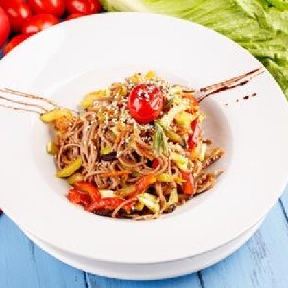 Гречневая лапша с овощами и кунжутом