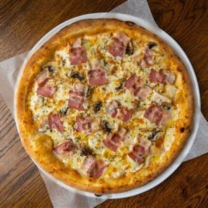 Куриное филе, шампиньоны, сыр «Моцарелла», итальянские травы. Приготовлена на сливочном соусе
