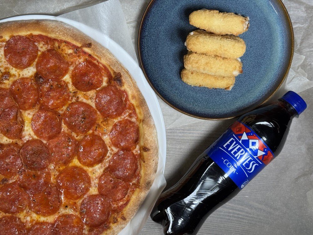 Набор Пицца пеперони 32см, сырные палочки, кола evervess 0.5
