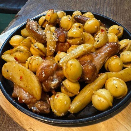 Сковородка с курицей в сливках